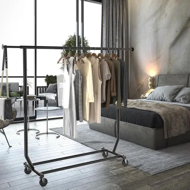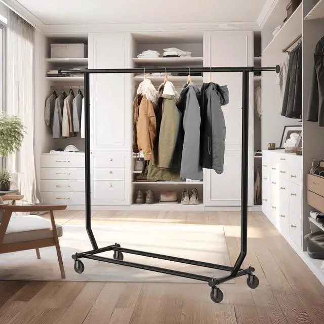 Commercial Grade Garment Rack Supports up to 250 lbs, ideal for storing and organizing heavy garments.