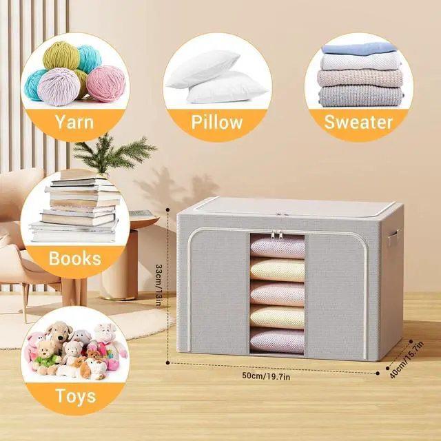 Easy to AccessThis large storage bags with zipper is upgraded with 1 clear windows and 2 open windows, allowing you to access your items at a glance, and you can easily access your items from the top and front side. Say goodbye to rummaging through boxes. The front and top of our clothes organizer bins are designed with sturdy dual zippers which opens and closes smoothly every time, making it easy to store clothes, linens, comforter and other household items and maximize the use of space.