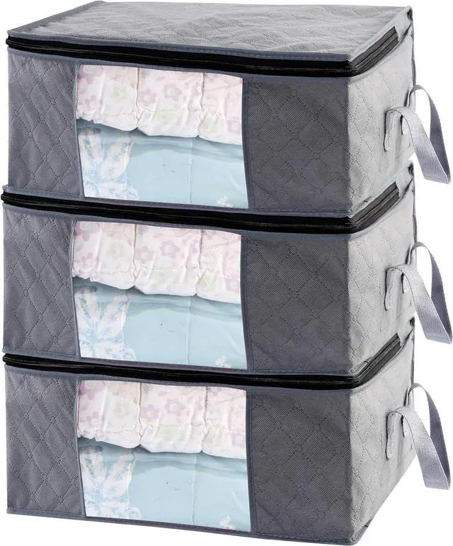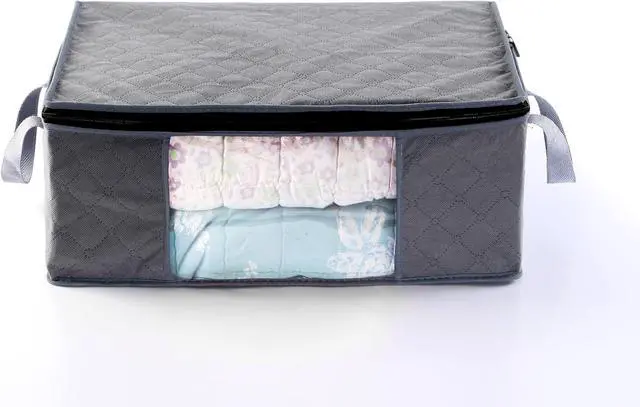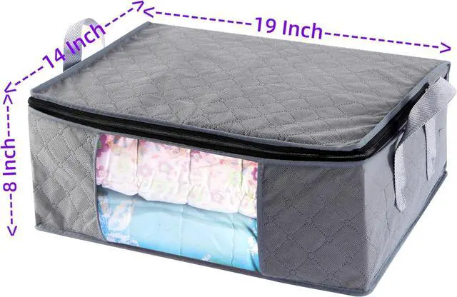 See-through window in the front of the closet storage bins allows you to see what is stored inside the storage totes. Zipper closure storage tote keep dust, pest, and moisture out. To clean the clothes organizer, just simply wipe the blanket storage with a wet towel gently and air dry.