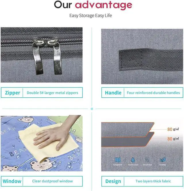 COMPLETELY BREATHABLE and 100% ECO-FRIENDLY - This storage bag is made of 100% eco-friendly polypropylene nonwoven fabric that allows air to circulate inside, ultimately keeping stored items fresh for longer. Also both sides are made of 2 layer thickened fabric, more durable and sturdier.