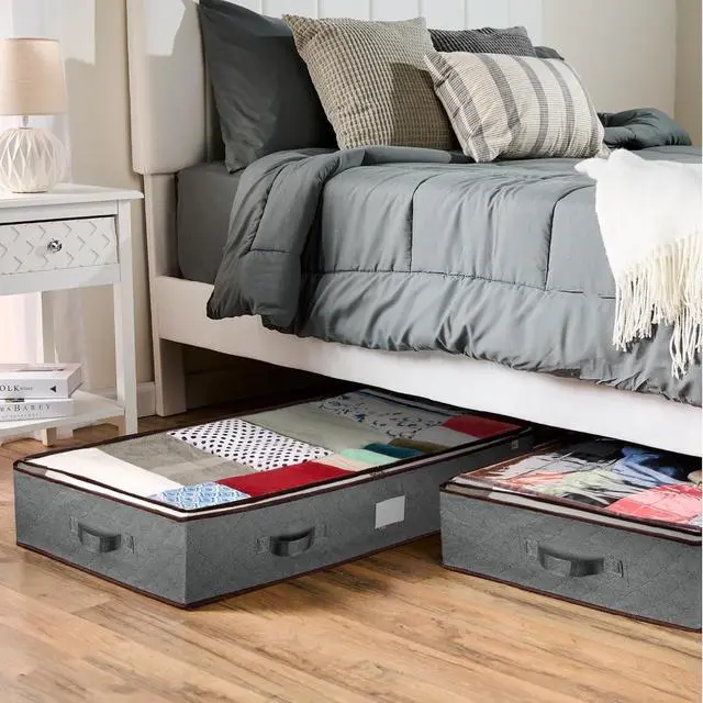 THOUGHTFUL DESIGN - Our clothing storage box set boasts a reinforced handle for easy maneuvering and sliding under any bed. The see-through plastic cover ensures that you' ll never lose track of what' s inside.