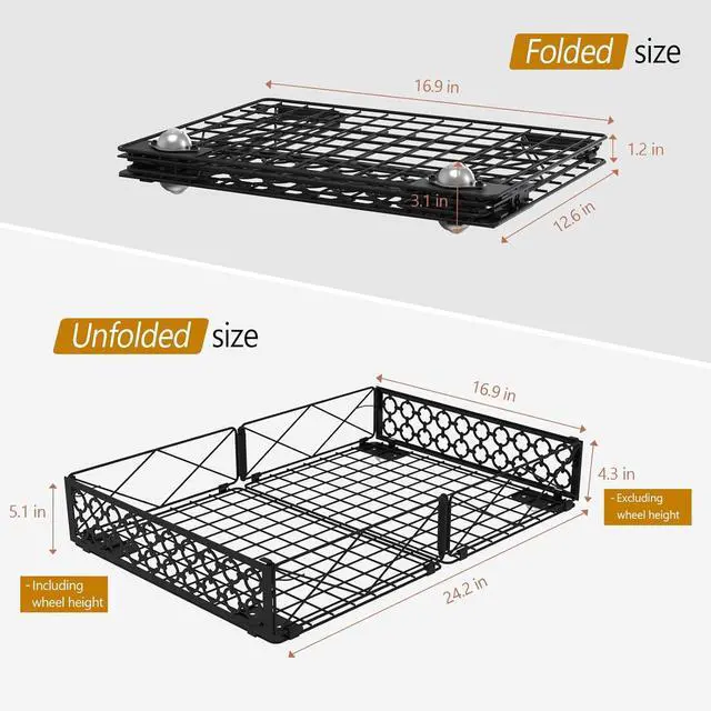 Foldable Design Measures 4.3 " H x 24.2 " L x 16.9 " W (without casters) for ample storage, yet conveniently folds flat when not in use, maximizing your closet or storage area space.