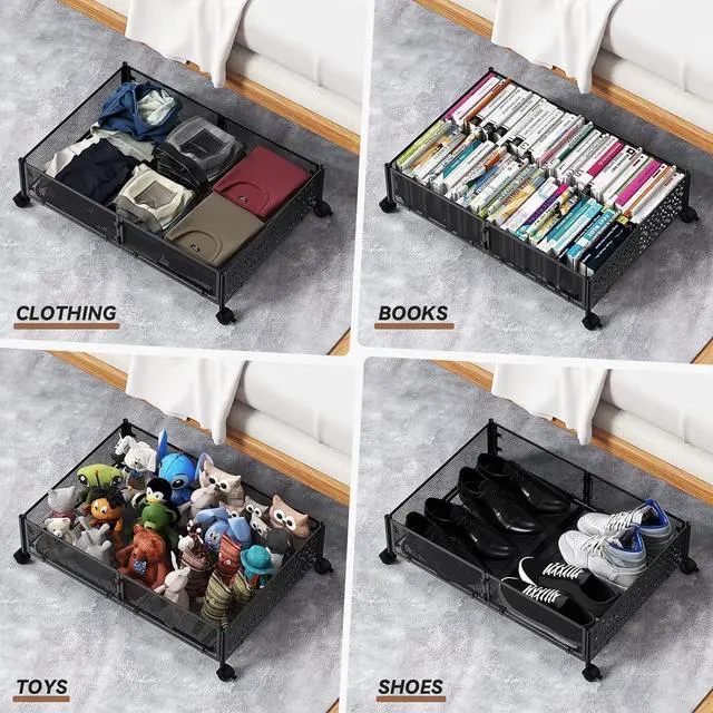 [Quality Metal Container] Never settle for flimsy plastic&linen under bed storage bins which rip all too easily. This under the bed storage container is completely made of metal, compared with other under bed storage bins, smaller mesh size of the shelf is used for a larger load-bearing capacity. Plus, the whole frame was welded into a whole that never falls apart.