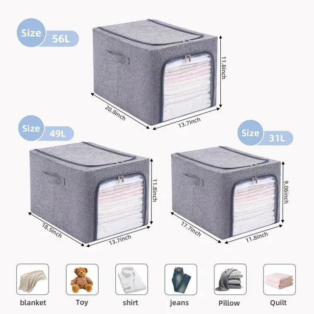 BIGGER CAPACITYThe clothing storage bins measure 13.7 * 20.8 * 11.8 inches, offering ample volume to store all your seasonal clothes, sweaters, quilts, sheets, toys, and pillows at once.