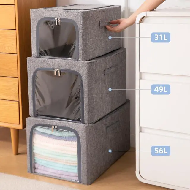 BETTER MATERIALThese closet clothes storage bins are made of Oxford fabric and a thick metal frame, which is not only moisture-resistant but also provides a robust structure, ensuring that multiple organizers remain stable when stacked.