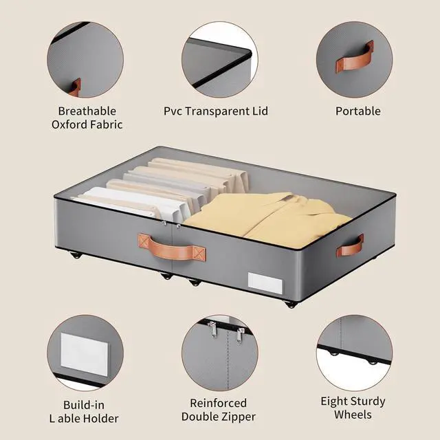 Store]: Our Leatherspaces underbed storage with wheels allows for effortless mobility, making it a breeze to pull in and out from under the bed. With 8 packs of 360° rotating wheels, you' ll experience smoother sliding and better support when accessing your items.