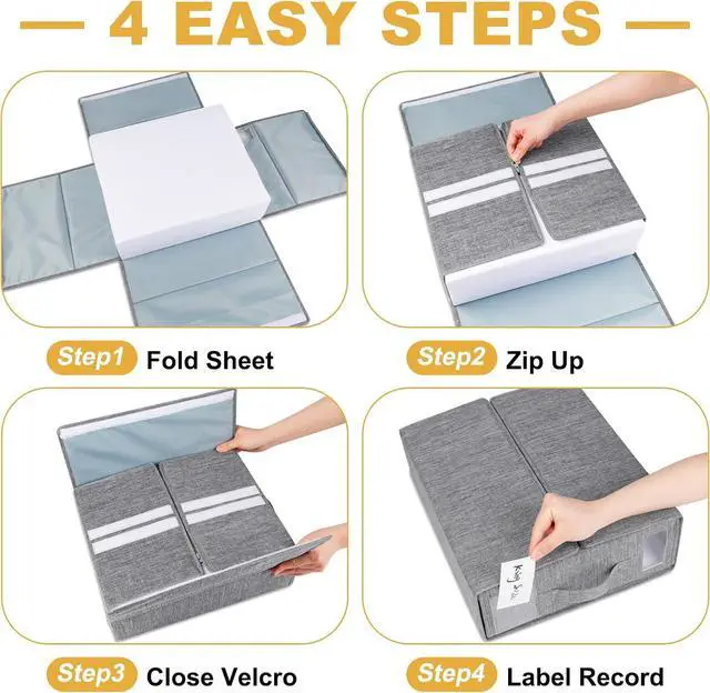 Easy to Use Sheet Storage BoxesOrganize sheets in closet is very easy to use. Fold your sheets. Wrap them up like a burrito. Press to seal the Velcro. Zip it up and store those sheet set in the now neat linen closets.