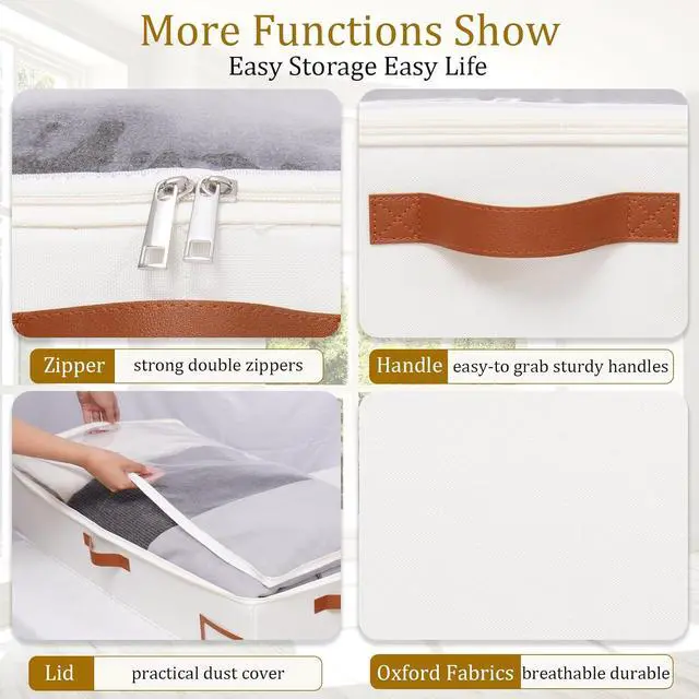 Material: The under-bed storage container is made of high-quality Oxford cloth, durable and breathable, keep clothing fresh from long-term storage, with a bottom insert for better support of the storage container