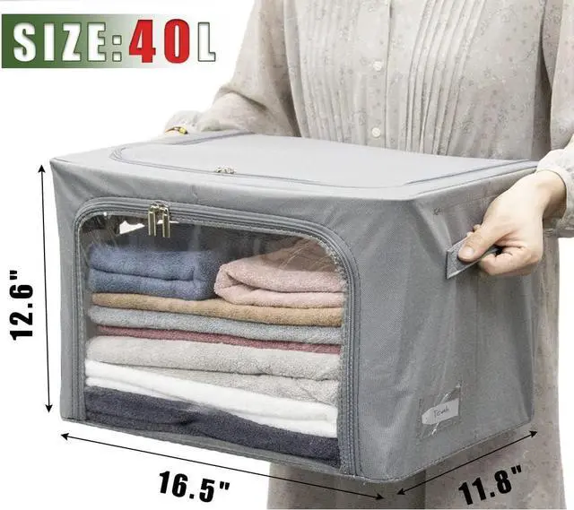 Storage Box 40L x 3 Value Packs -Measures approx. 16.5 * 12.6 * 11.8 inch - Updated Eco materials = -Oxford Cloth with PE coating instead of PVC make it 3 times sturdier than non-woven fabric bags. Odorless, durable, hard to tear up. Keep your closet much more organized!