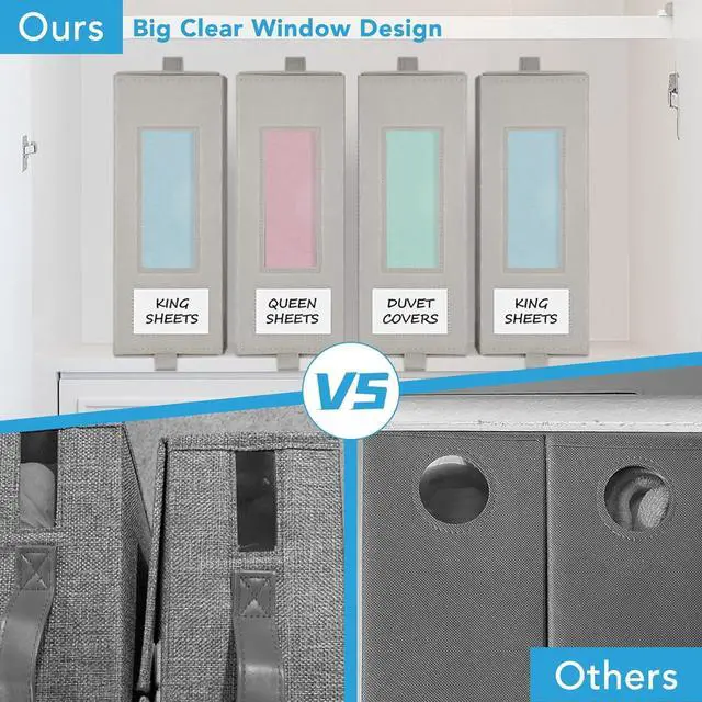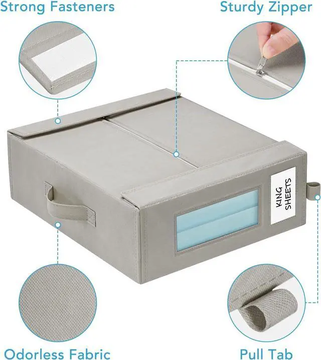 Big Clear Window: You can see what' s available in the bed sheet organizer at a glance with the big clear window and label card. All the sheets stay accessible and you don' t end up with opening and digging through the container in search of particular sheet