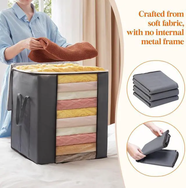 Generous Capacity: Measuring 19.7 " x 15.7 " x 23.6 " (120L), this comforter storage bag is perfect for winter blankets, duvets, quilts, sheets, sweaters, down jackets, and other winter apparel. Please note that they are just fabric bags, with no metal support inside, which is easy to fold away into drawer or cabinet to save space