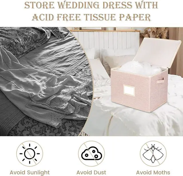 Ideal Wedding Garment Protection Solution: Our wedding dress storage box provides a breathable, dry, acid-free and dust-free environment for storing your wedding dress, which can easily fit into your closet or under your bed, making it the ideal place to store your wedding dress