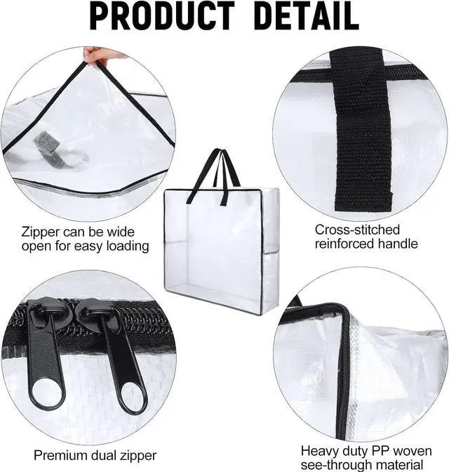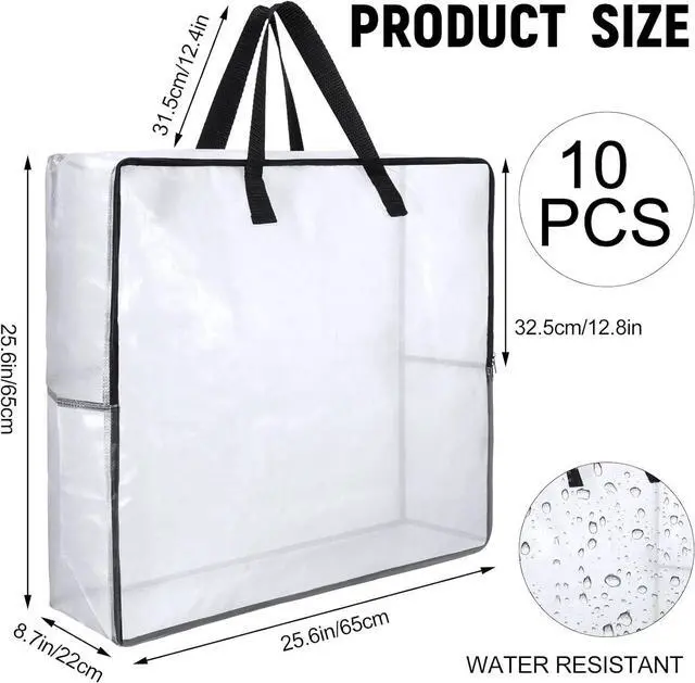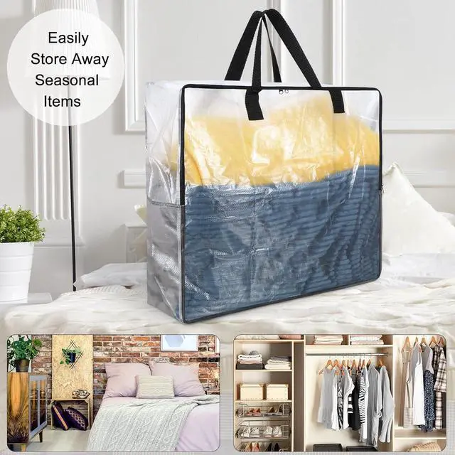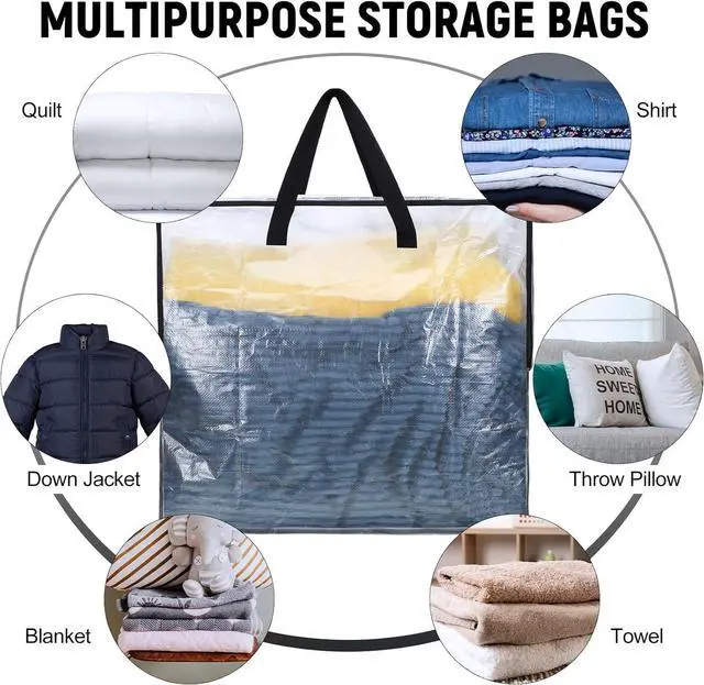 Multi Use: the extra large clear moving bags with zipper are ideal for storing and organizing various items, such as clothes, toys, shoes, towels, pillows, quilts, sheets, bedding, laundry and so on; Really a nice way to get rid of clutter and organize all your stuff