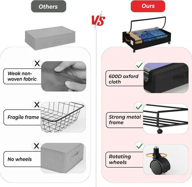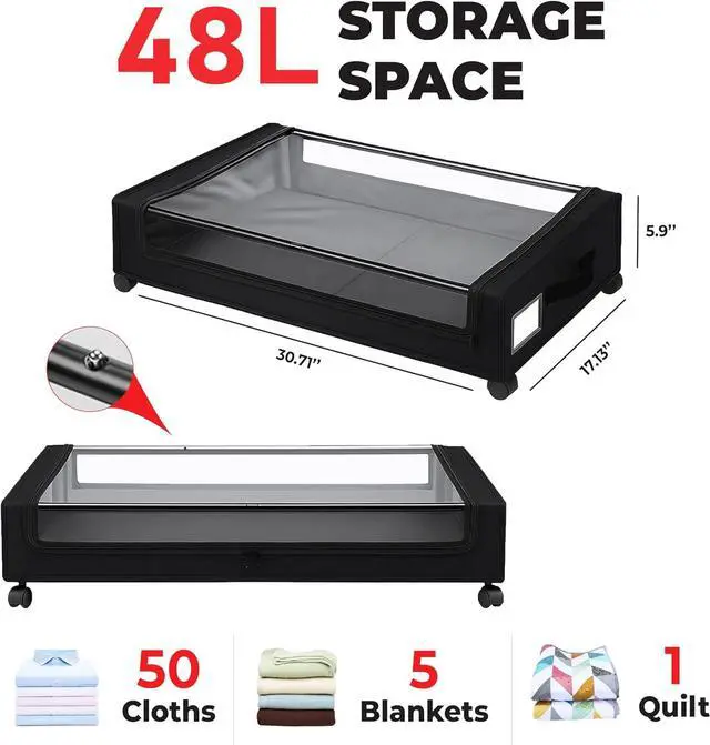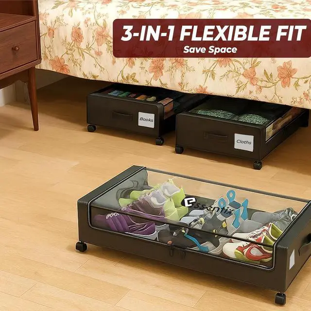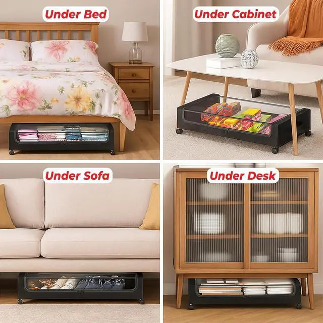 Easy Mobility: Rolling under-bed storage with smooth wheels for effortless access, perfect for organizing items in bedrooms, living rooms, or dorms.