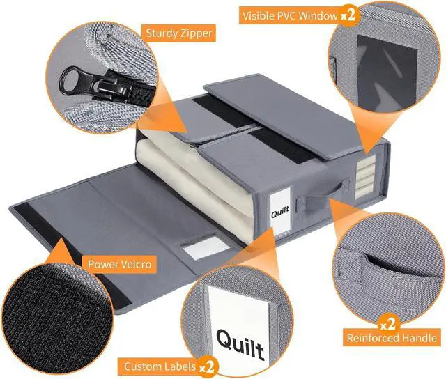 Two-sided PVC Window & Two Cards Slot: Label cards are included. You can insert index cards on both sides, which is especially useful when storing different types and sizes of sheets. Two visible windows in the front and above allows you to quickly view what are stored inside the storage. This enhances visibility, making it convenient to locate your bedding items and other out of season clothing
