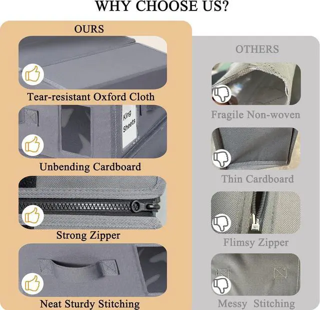 Durability & Breathable: Crafted from Oxford cloth and thick PP board, the sheet organizers provide you with a more breathable, moisture-proof and dust-resistant storage solution compared to most nonwoven fabrics. It can withstand wear and tear better