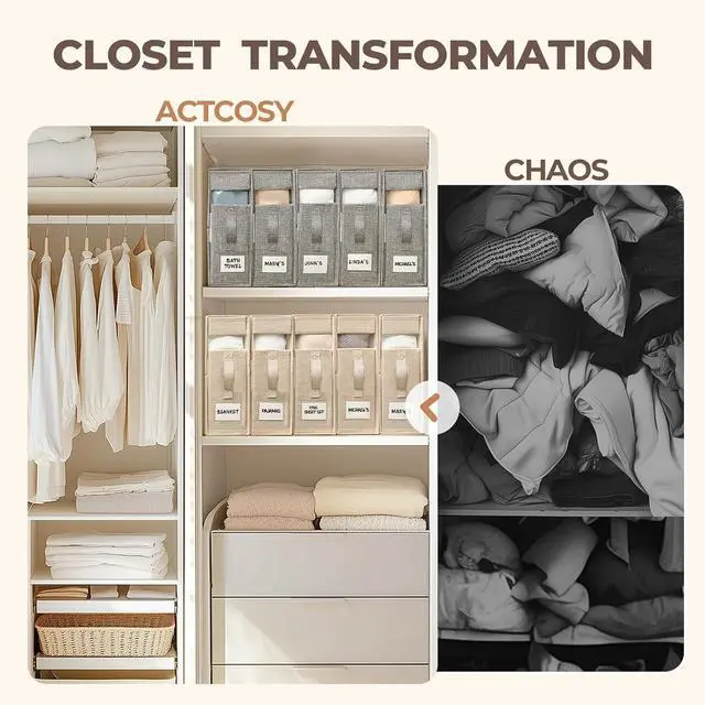 [Large Capacity and Multifunctional] - Each closet sheet organizer measures 15.16 " L x 12.99 " W x 4.65 " H, capable of holding 1 full King or Queen sheet set (including a fitted sheet, flat sheet, and 2 pillowcases) or 2 lightweight blankets. Its also perfect for storing duvet covers, sofa covers, coverlets, towels, and even kids toys (e. g., LEGO sets or stuffed animals). With this practical sheet organizer for linen closet, maintaining a clean and orderly linen closet is super easy.