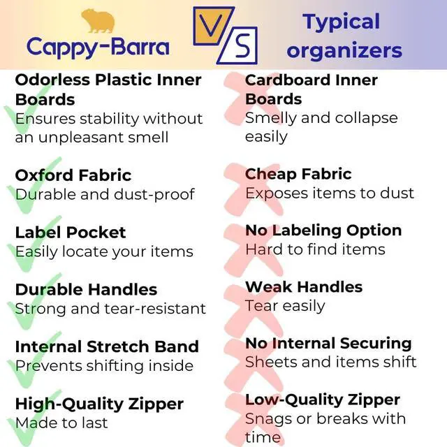 Versatile Storage Containers: Not just for sheets, our containers can hold clothes, towels, and more. Whether you need to organize your linen closet or bedroom, our organizers are up to the task.