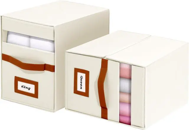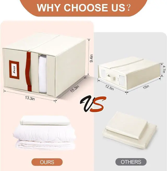 Storage: Measuring 15.35 x 13.38 x 9.44 inches (DOUBLE SIZE of basic model on the market), this large linen organizer and storage can easily storage king-size or queen-size bedding sets or duvets. No more worrying about running out of space or overstuffing your storage
