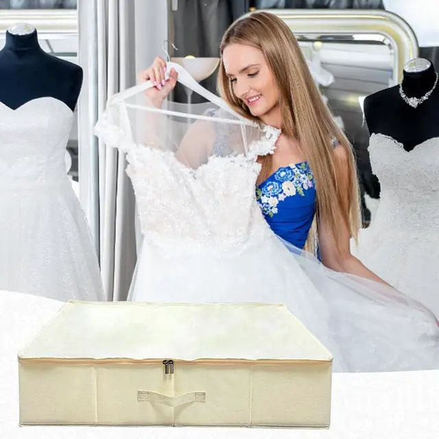 Wedding dress preservation conditionsNo matter what method you use to preserve the wedding dress, it is recommended that you find a place where the temperature does not change much and avoid sunlight, dust and moths from damaging the wedding dress. Therefore, The best place to store your beloved wedding dress is underbed or above the wardrobe. Our size is perfect for both places.