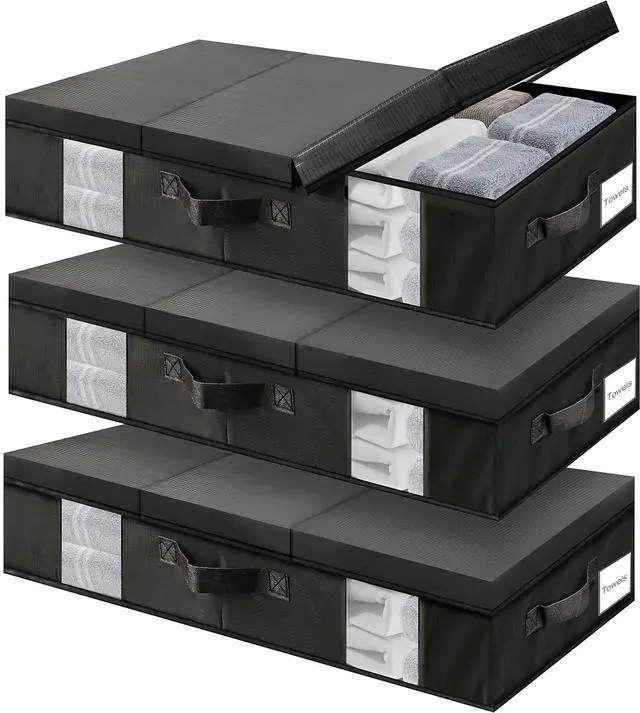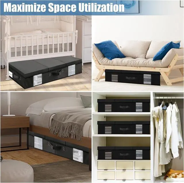 Foldable Containers: These underbed storage organizers consist of three parts, they come with a lid that can be folded into three parts easily to view the contents inside. Also, it can be folded into a flat shape when not in use to save space.