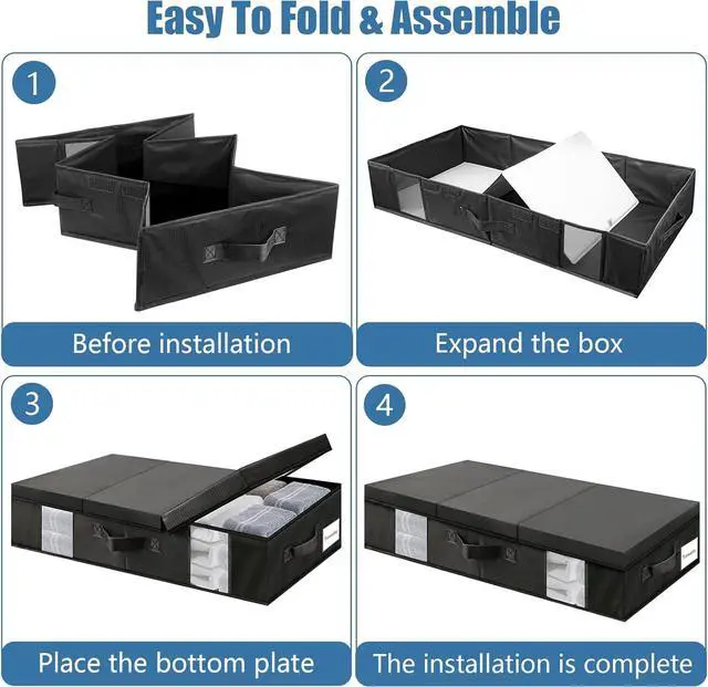 PEVA Waterproof Material: The outer side of the under bed storage box is made of PEVA waterproof fabric, sewing PP plastic board, waterproof and moisture-proof double upgrade. Side with two transparent window visualization, can quickly distinguish the inside of the items, more convenient to take.