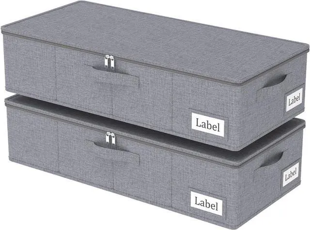 Yawinhe Underbed Bags, Storage Containers Bags with Lid, Foldable Blanket Bins, with Sturdy Zipper und Label Holders, for Clothing, 23.6''Lx11.8''Wx6''H, 2 Pack, Grey