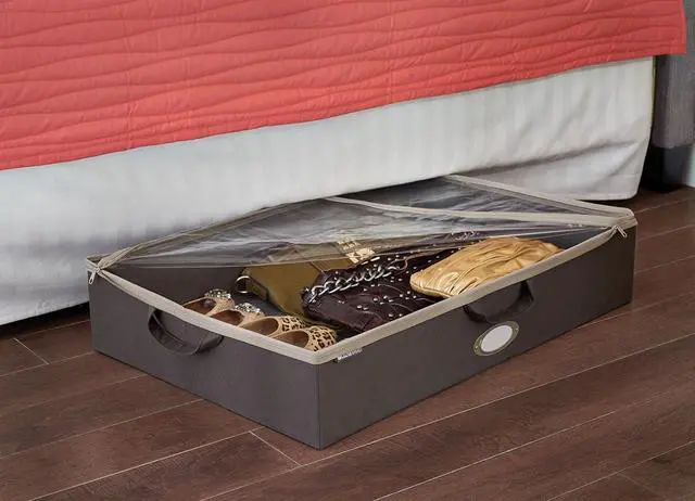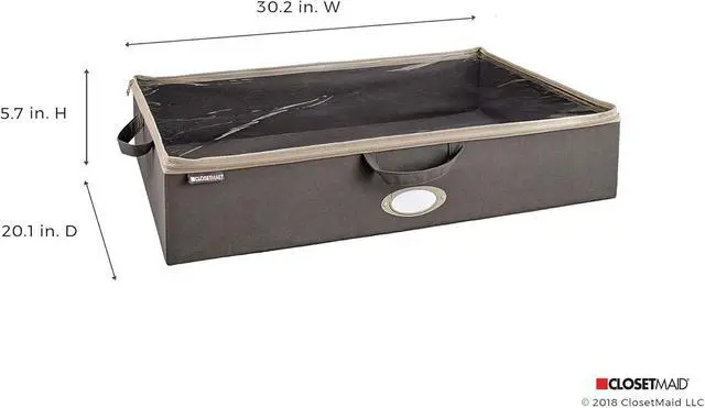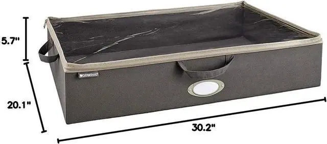 Label to identify stored items 3 handles for easy accessibility and portability Clear top for easy visibility Zipper closure for dust-free storage Measures 5.7 -inches high by 30.2 -inches wide by 20.1 -inches deep