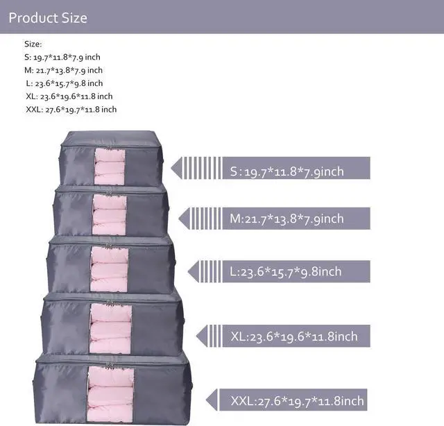 Large Size - 23.6 * 15.7 * 9.8 ". Easy to store clothes, pillow, blankets, quilts ect.