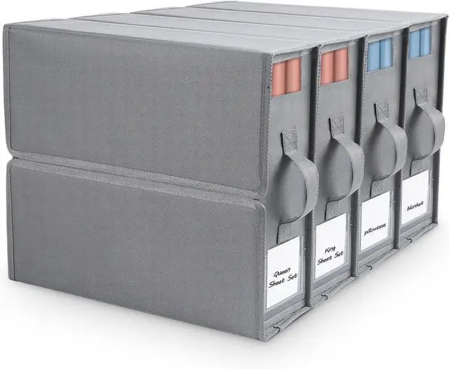 Labels and Handles: The foldable bed sheet storage box comes with removable labels, saving you time when looking for bed sheets. Say goodbye to rummaging through clothes when searching for your sheets. It also features sturdy handles, making it easy to grab the box from your closet.