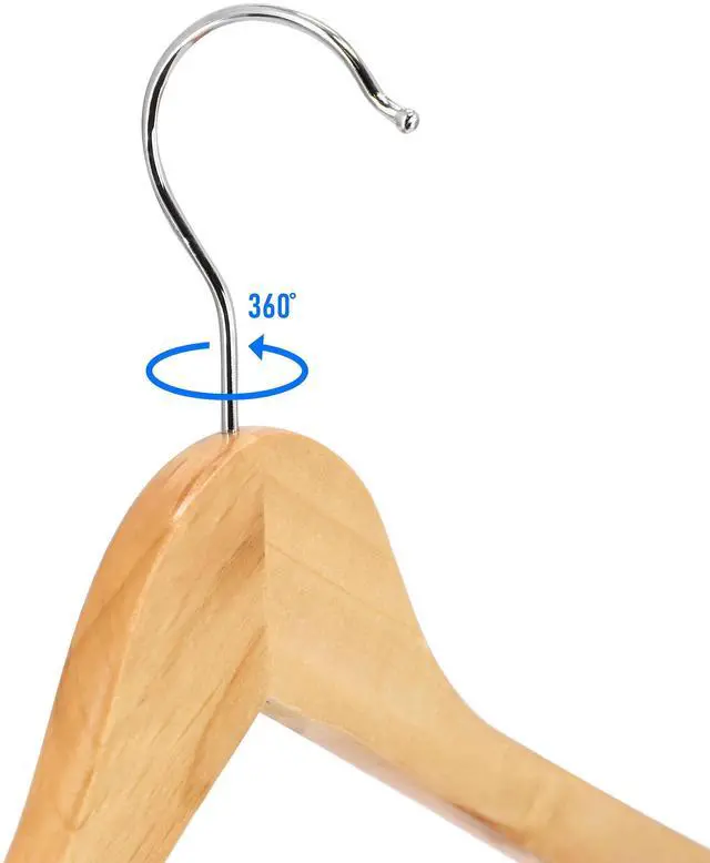 Maximize your closet organization with the MegaChef 20 Piece Acacia Wood Swivel Hook Hanger Set in Light Brown, a premium solution designed to keep your clothing and accessories neatly hung and easily accessible. Crafted from high-quality acacia wood and durable stainless steel, this set features a warm light brown color that adds a natural, stylish touch to any wardrobe or entryway. Each hanger includes a 360-degree swivel hook, allowing for smooth and convenient rotation, so you can access your garments from any direction. The shoulder notches are specially designed for clothing with small straps, while the bottom pole provides additional hanging space, making it perfect for maximizing closet storage.