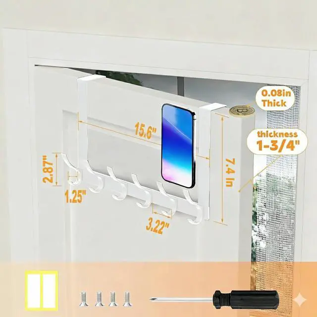 Please measure the thickness of your door before placing your order. Make sure there is a coin ( 0.08 inch) gap in the door for easy closing. [Double storage] The over door hanger features a double-layer design with 12 hooks for double the storage space. Door hooks for hanging coats suitable for bathroom bedroom living room kitchen. [Good service] Door hooks are well made and stylish they are practical and attractive decorations. If you have any questions please feel free to contact us. We will give you a satisfactory answer within 24 hours.