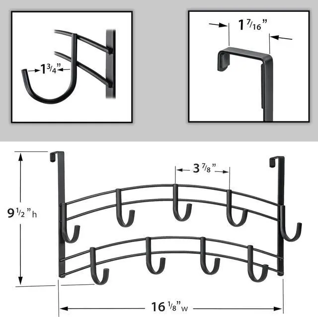 LYNK PROFESSIONAL HOME THERE IS NO SUBSTITUTE! 9 LARGE HOOKS ORGANIZE SCARVES belts ties shirts jackets coats robes towels handbags jewelry caps hats purses and other accessoriesPROFESSIONAL QUALITY FOR THE HOME BEAUTIFUL ORGANIZER RACK FOR THE HOME in bedrooms bathrooms and laundry roomsFITS OVER ANY STANDARD DOOR up to 1-7/16 inches thickSOFT FOAM PADDING PROTECTS DOORSBUILT TO LAST BACKED BY A LIFETIME LIMITED WARRANTY Epoxy-coated heavy gauge steel - warranty provided by Lynk