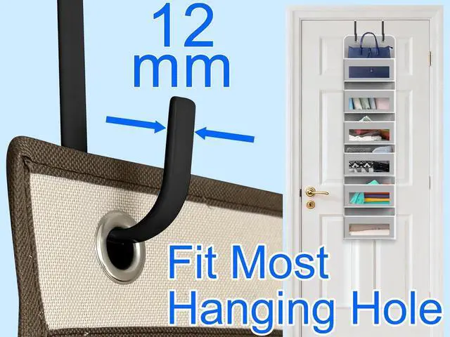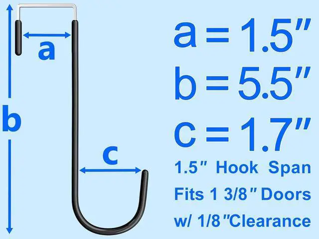 Universal over door hook fits most interior doors thin ( 0.5 ) to thick (1 3/8) with fixed 1 3/8 opening (non-adjustable) - excludes wide front doors. Always measure your door thickness before purchase. Single over-the-door hooks offer adjustable spacing freedomunlike fixed racks each hook moves independently to customize gaps for bulky items by sliding them apart as needed. These premium steel over-door hooks feature nickel electroplating with a durable plastic coating supporting up to 50 lbs. The rubberized plastic sleeves prevent hook wobbling protect doors from scratches/paint damage and feature long-lasting non-yellowing durability for worry-free use.