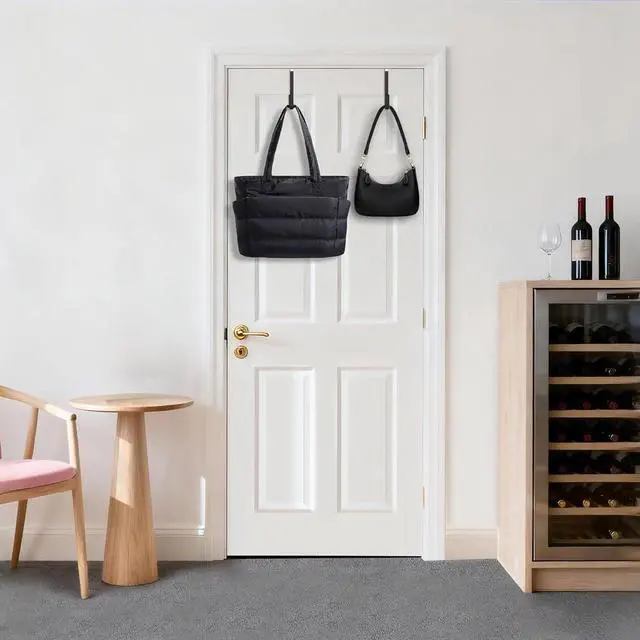 With a sleek all-steel top (no rubber padding) and thin 1.7 - 1.9 mm profile these hooks maintain door-closing functionality while providing sturdy hangingScrew-free drill-free glue-free over-door hooks install instantly without damaging doors - just hang and go. 5-year returnless replacment.