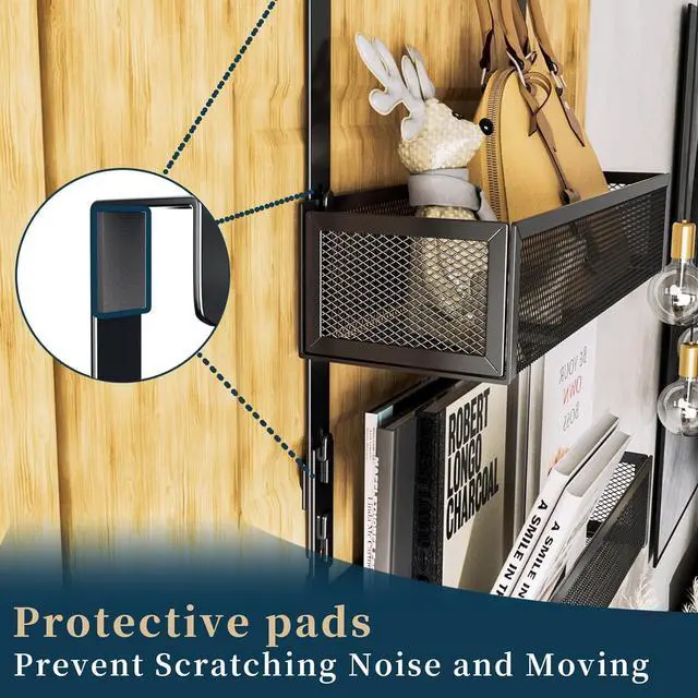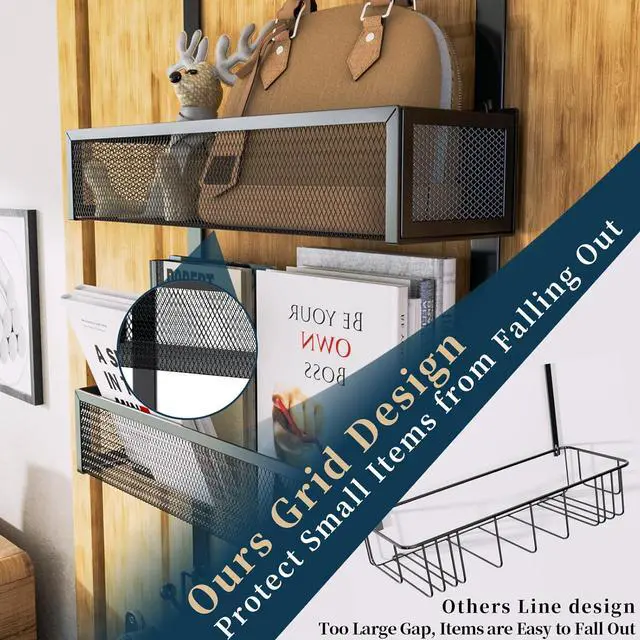 Door Hanger]: Over the door hooks provides extra storage space to help you easily store. The top basket can store toiletries; the lower basket with mesh design and the grid is tight so you no longer have to worry about your tiny goods falling and you can store cosmetics necklaces earrings bracelets etc[Size of over door organizer]: Most 1.76 inch thick doors can use this over the door storage hanger. Make sure the gap between the top of the door and the width of the hook is greater than 2 mm in order to get the door to close quietly[Sturdy
