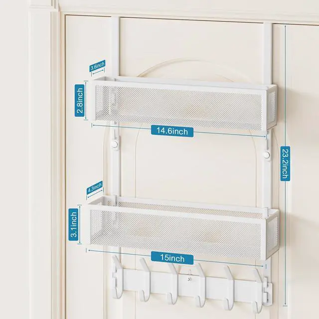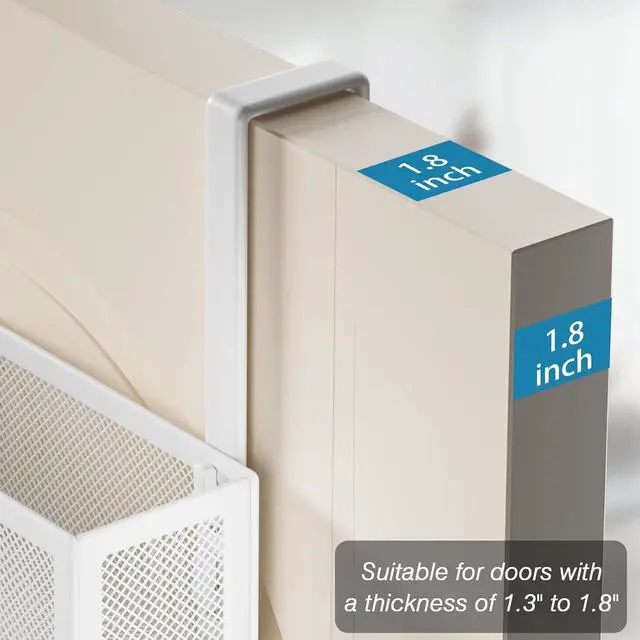 We also provide 2 protective pads and 1 sticker for fixing and muting. Wide Range of ApplicationThe simple design over door organizer with 12 coat hooks and 2 mesh baskets to create extra space for your door. Can be used in the bedroom kitchen bathroom study room office and all other places where you need to hang storage. The shape is simple but decorative convenient for your life and make your home neat and orderly. Check Before Purchasing This door hanger with a solid bracket fits about 1.3 - 1.8 thick doors the overall size of the door hanger frame is 24.8 * 16.8.