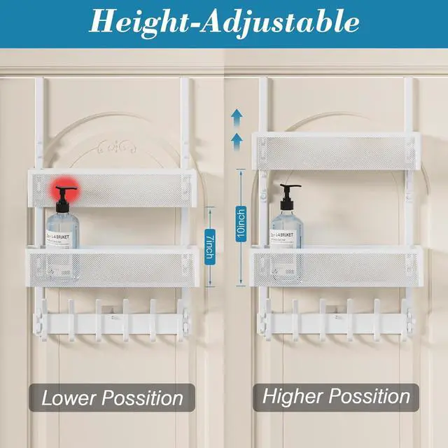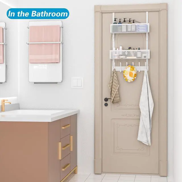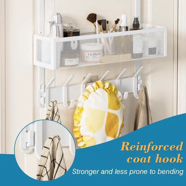 • Over The Door Hooks Organizer Over Door Storage with 12 Coat Hooks and 2 Mesh Basket Bathroom Door Organizer Towel Rack Back of Door Hanger Organizer for Bedroom Kitchen(White)