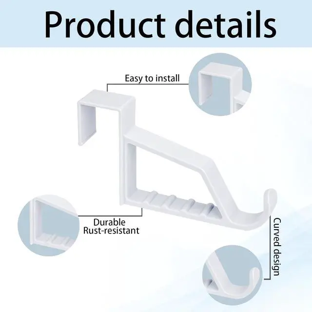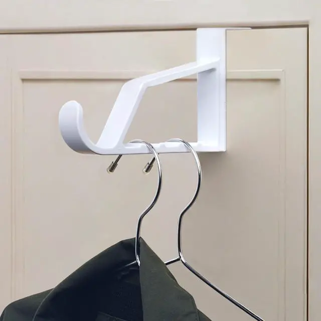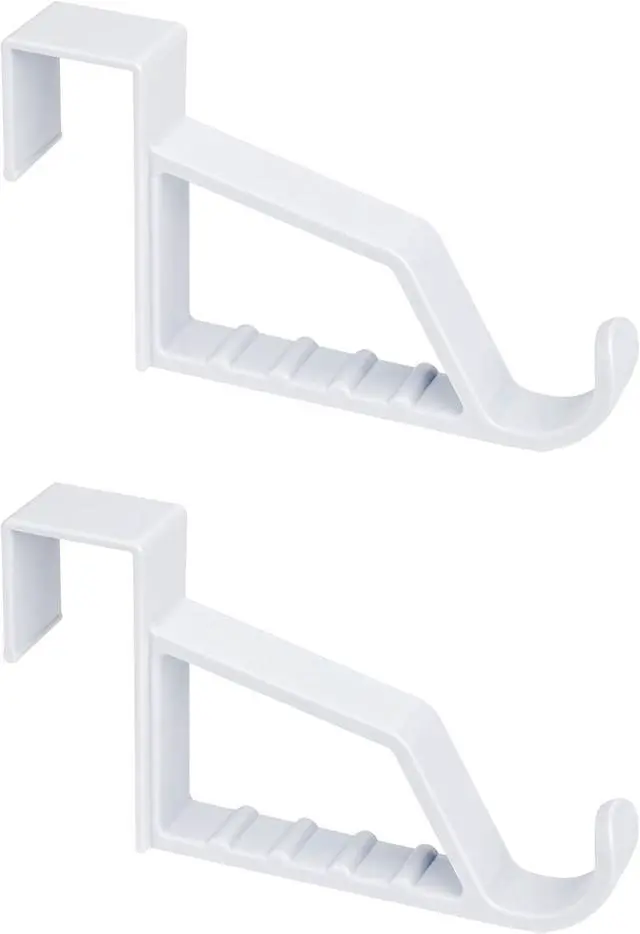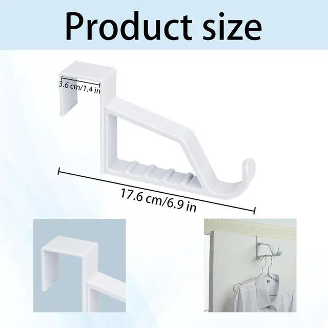 Pack of 2 super strong plastic over door hooks - Easy to use. Useful in any room. Fits over most doors - slightly sprung for secure fit max door width 3.5 cmOne large main hook - plus 5 split sections to hang garments on coat hangers evenly to prevent creasing. Great for holding multiple outfits on hangers when ironing or drying clothesSuper strong smooth white plastic over the door hook ideal for coat storage towels robes and jacketsApprox.