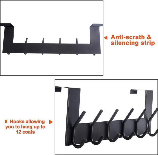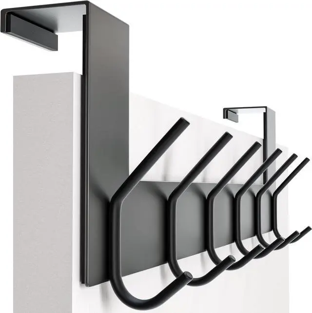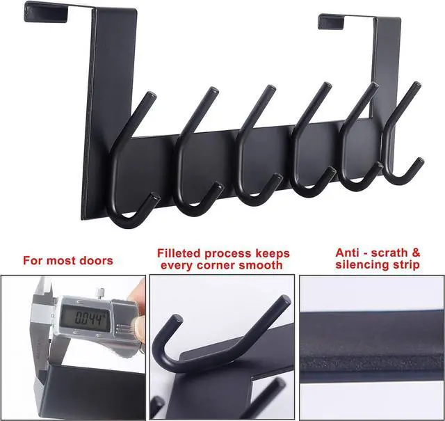 Stainless_steel MetalOver the door hook with 6 hooks; matte black made of stainless steel package including 1 x door hook.