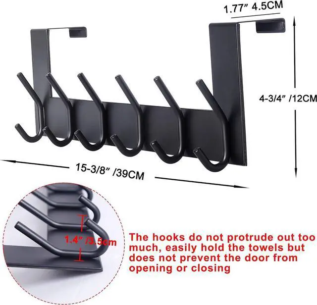 Easily hanging over door: the up hooks do not protrude out too much easily hold the towels but does not prevent the door from opening or closing.