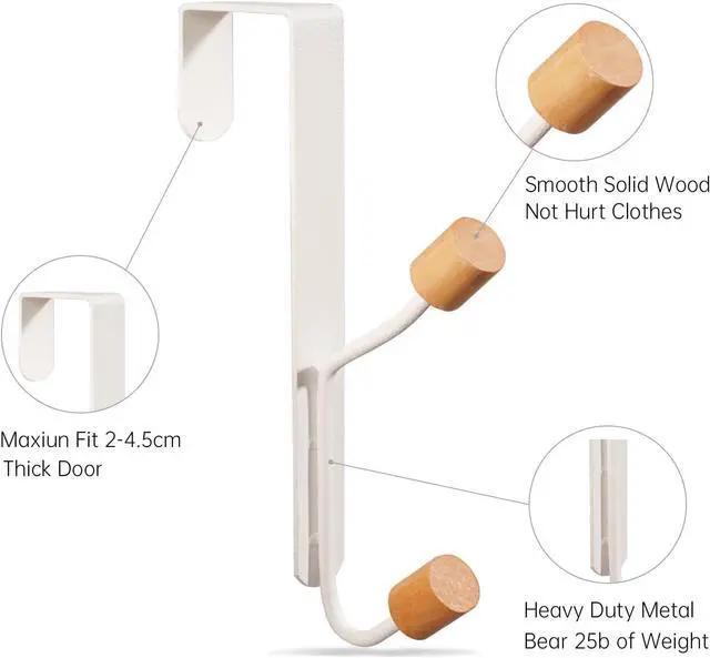 OVER THE DOOR HOOKS WITH WOODEN KIT - Conveniently keep your space organized and tidy in the limited spaces. Specially designed the tip of the hook has a wooden ball that does not damage clothes. FIT MULTIPLE THICKNESSES -