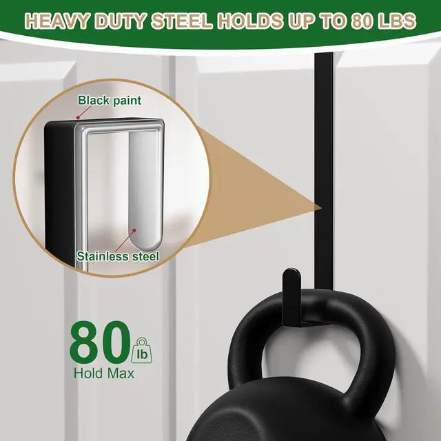 Fits Most Doors: Features a Z-shaped design with two widths this wreath hook offers flexible use for most door thicknesses up to 1-3/4 and optimal for 1-3/4 and 1-3/8. An ideal wreath hanger for front door or interior door decorations year-roundEnhanced Weight Capacity up to 80 lbs: With a widened and thickened hook surface the door hanger hook distributes the weight evenly while the inner heavy-duty steel ensures its strength and durability allowing it to securely hold heavy items up to 80 lbsLong Enough for