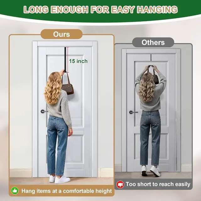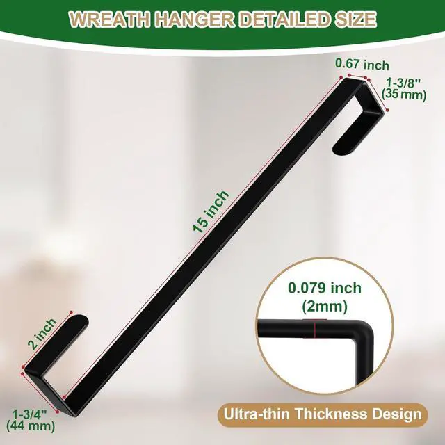 Easy Hanging: The 15-inch over the door wreath hanger is perfect for most tall doors helping you hang any items at a comfortable height. Whether for daily use or festive displays this door hook provides easy reach for your familyVersatile for Indoor &