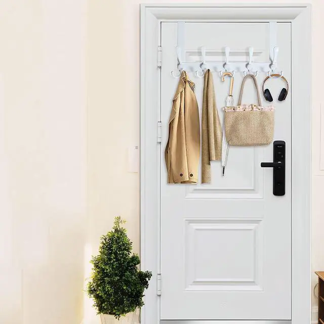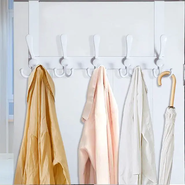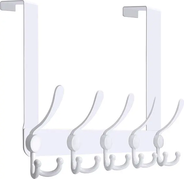 • WEBI Over The Door Hooks Door Hanger Hook Rack with 5 Tri Hooks for Hanging Over The Door Towel Rack Towel Hanger Door Coat Hanger Over Door Coat Rack Behind Back of Bathroom White