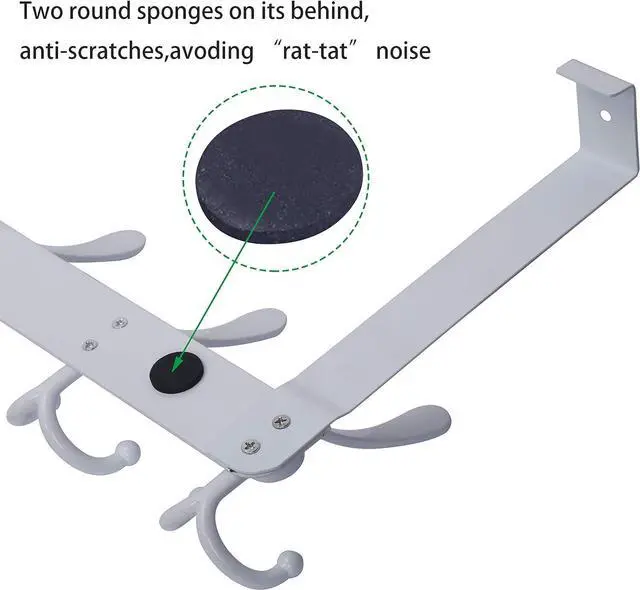 PROTECT DOOR: These over door hanger padded with two round sponges behind anti-scratches on door reduce noise when the door rack hanger taps on.