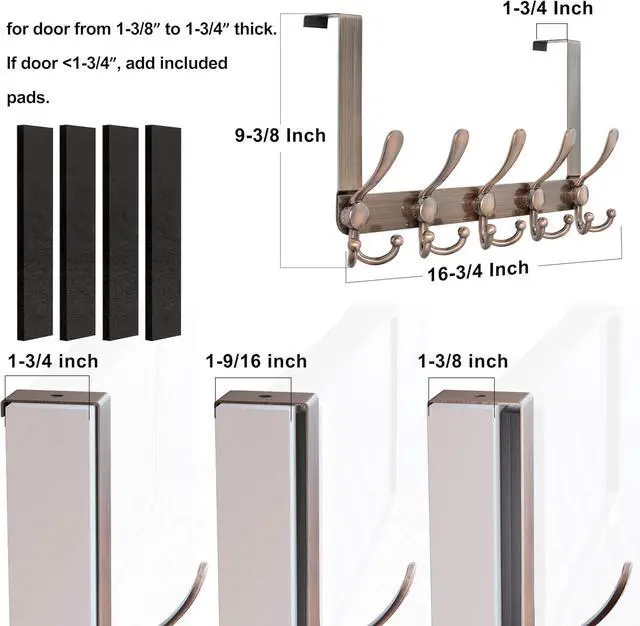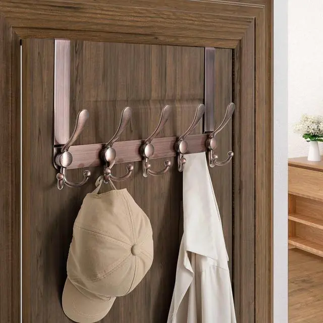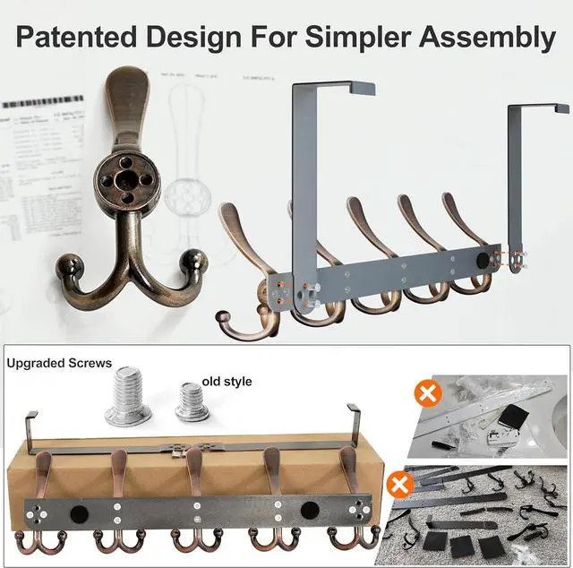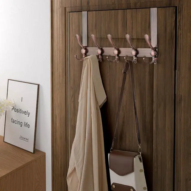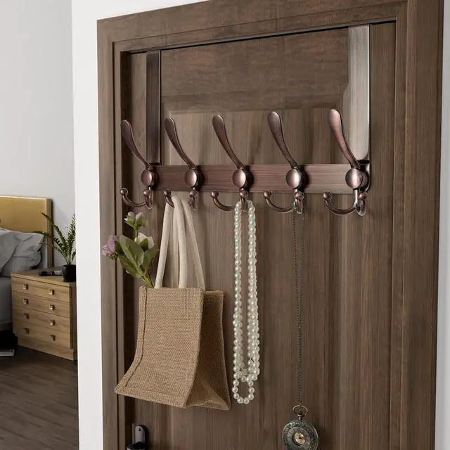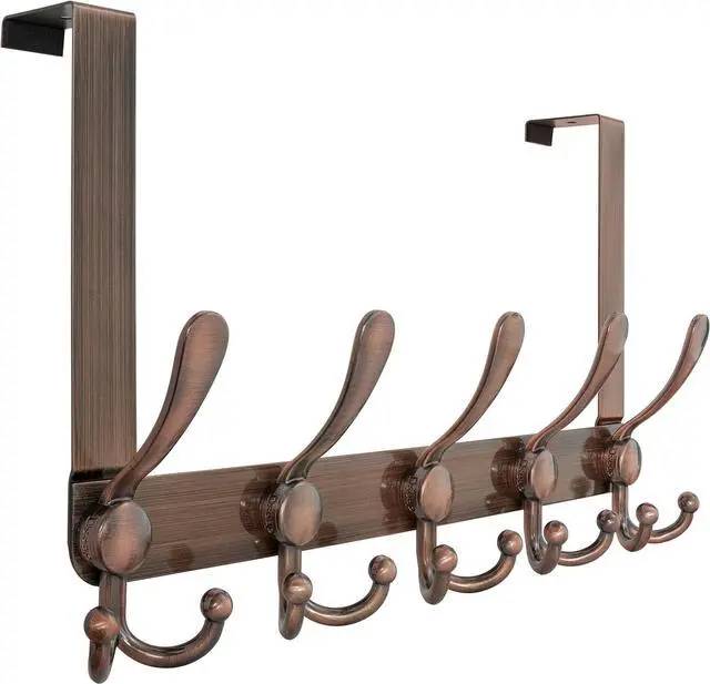 ULTRA PRATICAL: Extra utility over door rack with 5 tri hooks well organizes coats clothes towels hats bags etc.. Ideal for entryways bathrooms mudrooms and closets. Including 1 x behind door hook pads mounting hardware color: antique copper