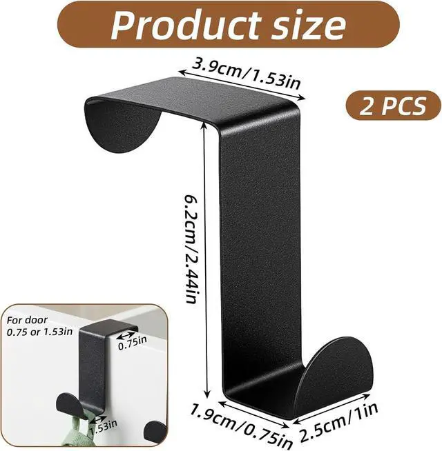 Compact Practical SizeWith overall dimensions of 6.2 x 2.5 cm and two opening widths these compact door hooks are designed to be space-saving while accommodating different door thicknesses.
