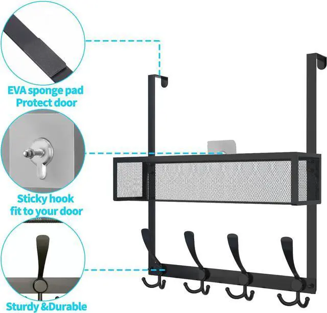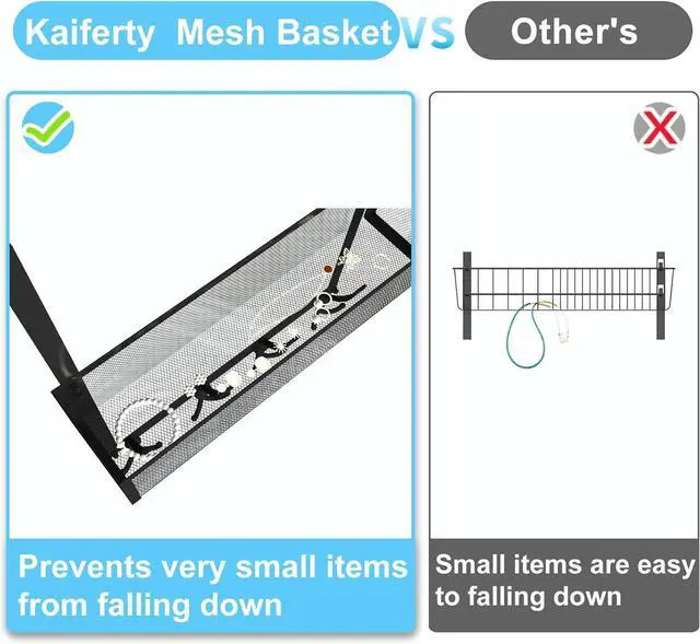 ? Fashionable design for over the door organizerOver the door hook is made with a high density mesh which prevents very small objects from falling. The appearance of Kaiferty on the over door towel rack is simple and elegant offering you a large storage space. Over door storage organizer can be used in the bathroom kitchen bedroom office and other places where hanging storage is needed They take up a lot of different roles to meet your needs.? Sturdy & Durable bathroom organizerDoor hanger hook is made of high-quality Stainless Steel and its surface is coated with a rust resistant/rust proof and environmentally friendly coating making our bathroom door organizer sturdy durable Each hook features a three aluminum alloy hooks so you can hang more items on each of them Balled ends design keeps items from slipping out and prevent clothes from getting scratched.