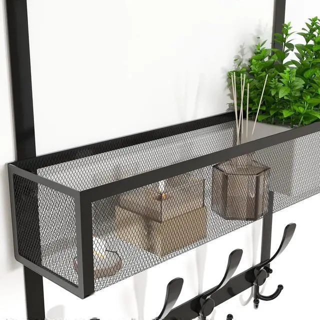 • Kaiferty Over The Door Hooks Organizer Over Door Hanger Towel Rack Mesh Basket with 12 Hooks Back of Door Storage Organizer for Bedroom Bathroom Kitchen Office(Black)